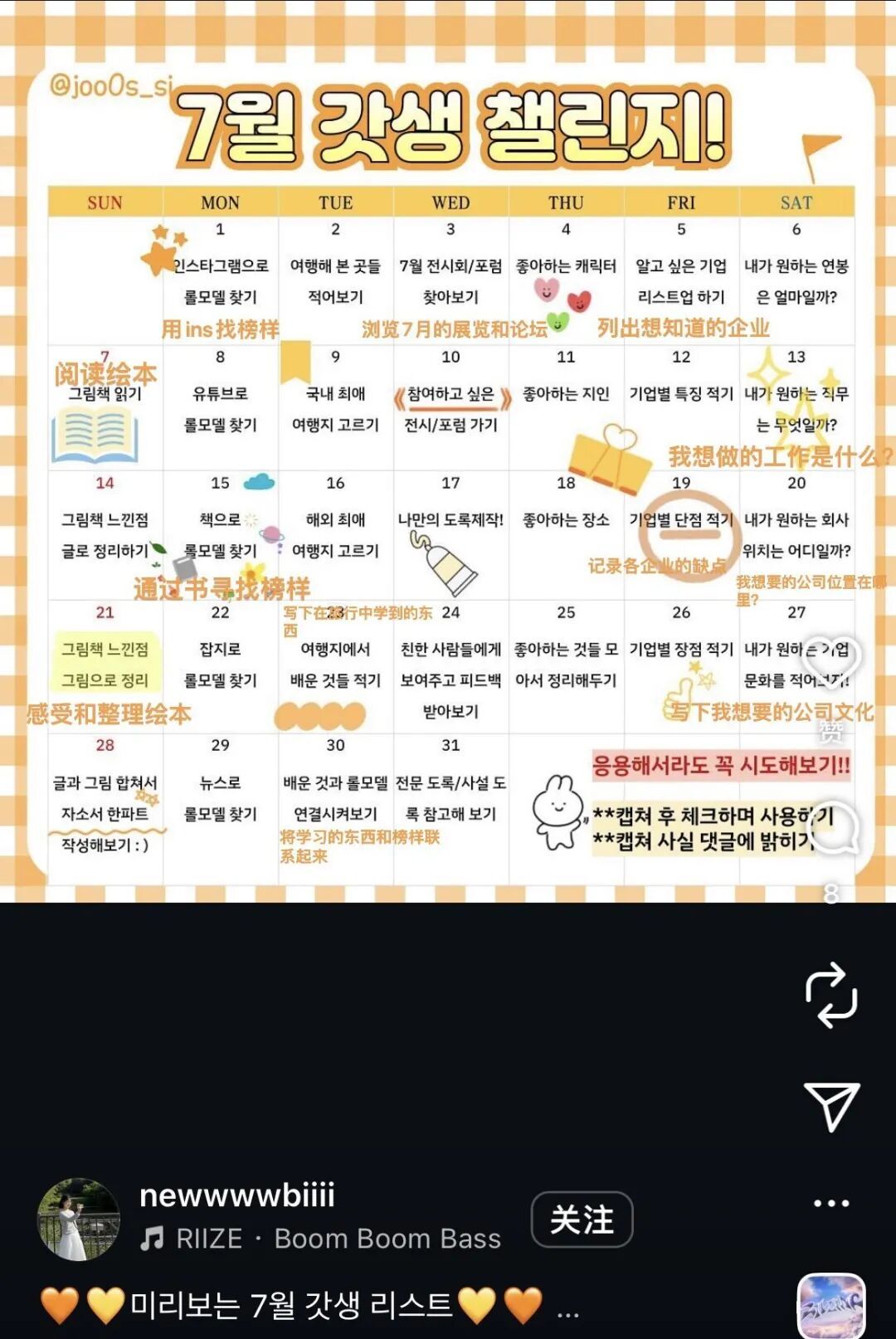 一位网友分享的7月“god 生” 挑战的日程表